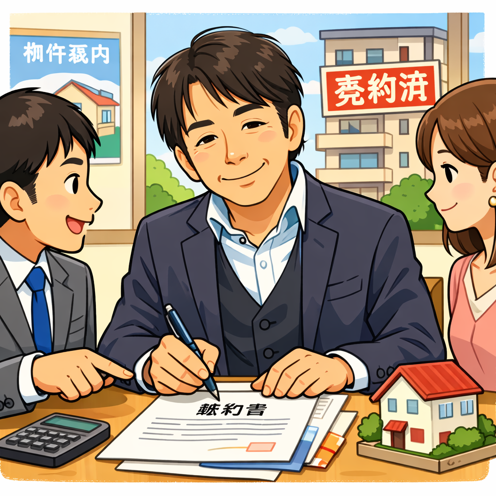 Chat GPTに 「永田 不動産を買う」をイラストにと指示すると、